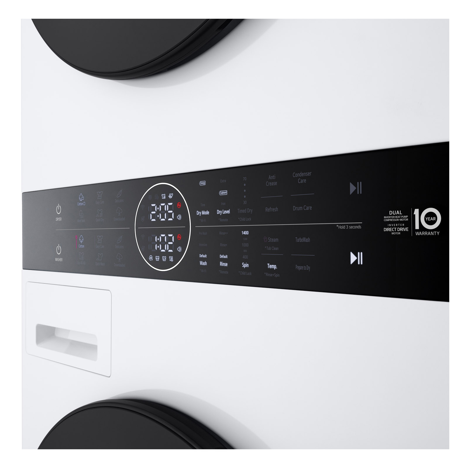 LG WashTower™ 12/10 kg, deri në 1400 rrot./min, Steam™, TurboWash™360, Pastrim automatik i kondensatorit dhe funksioni ThinQ™ WiFi